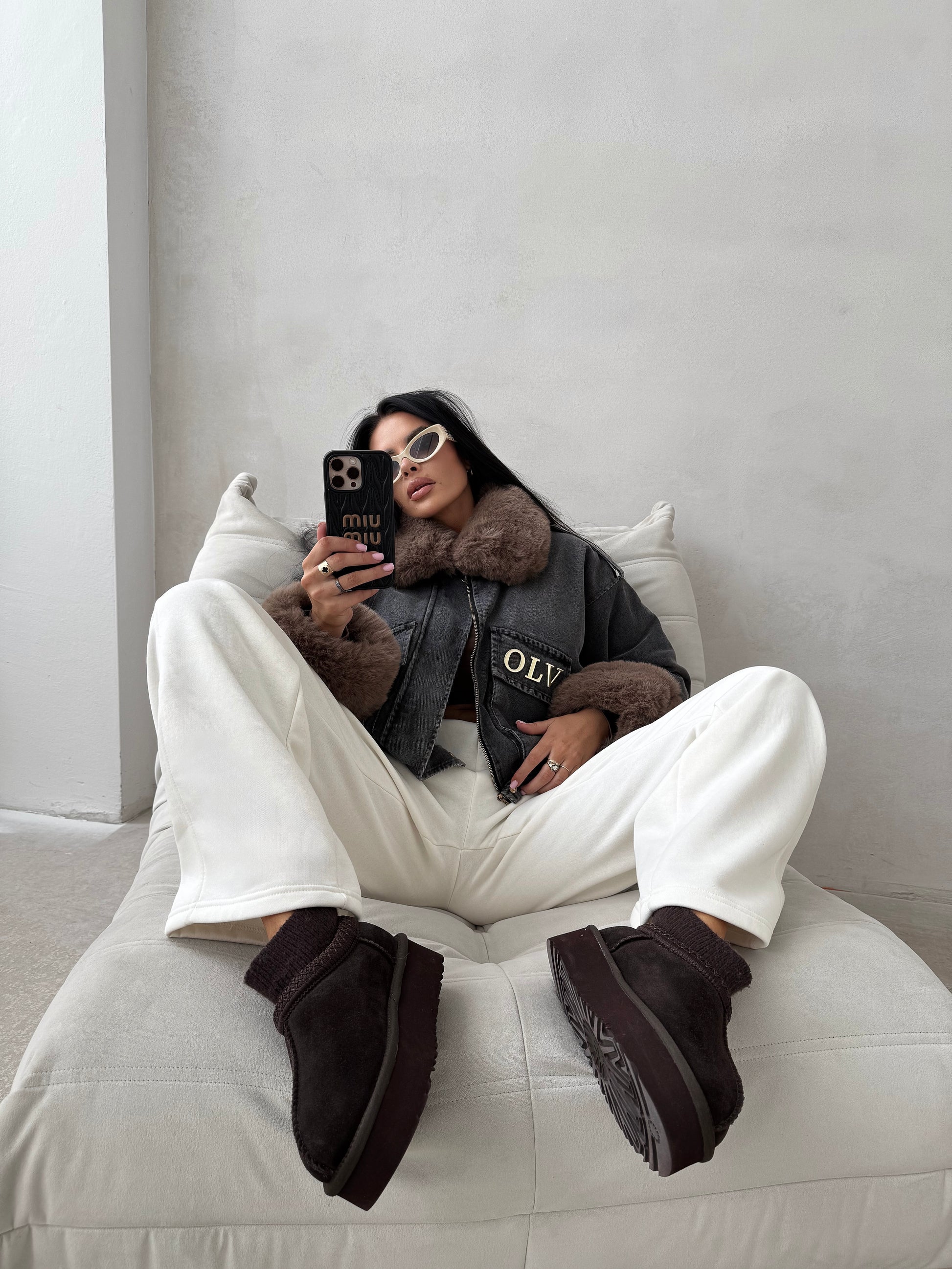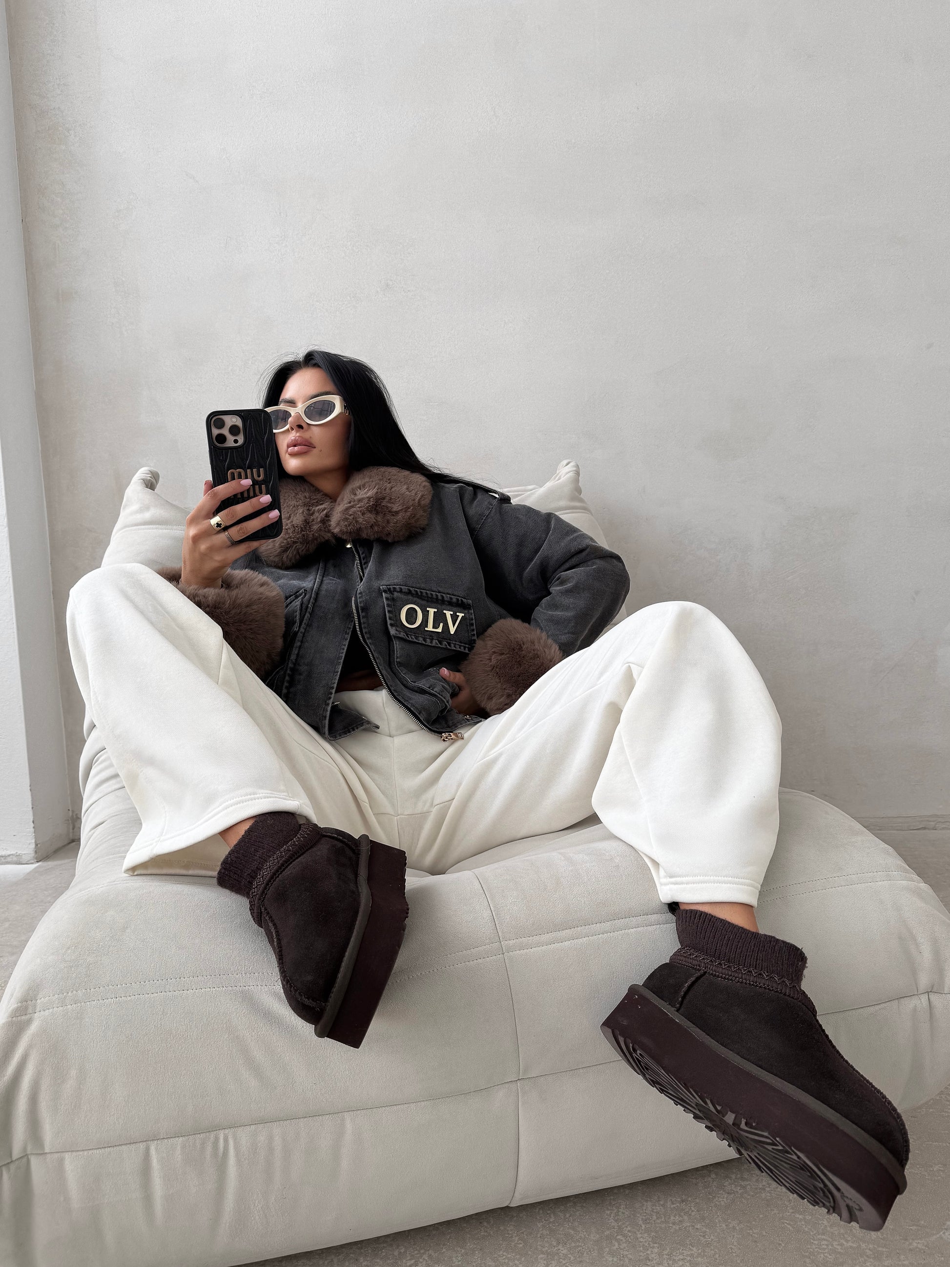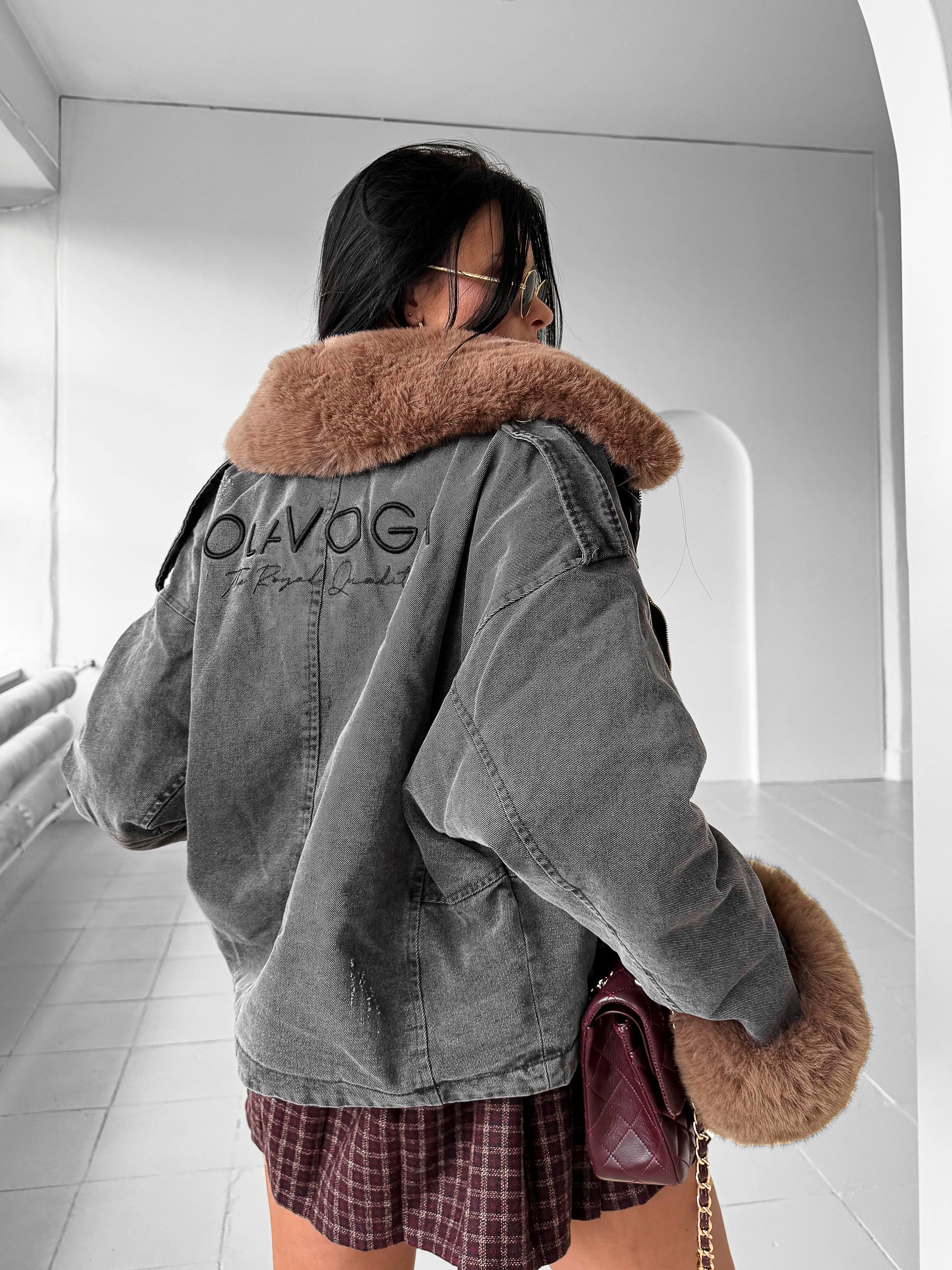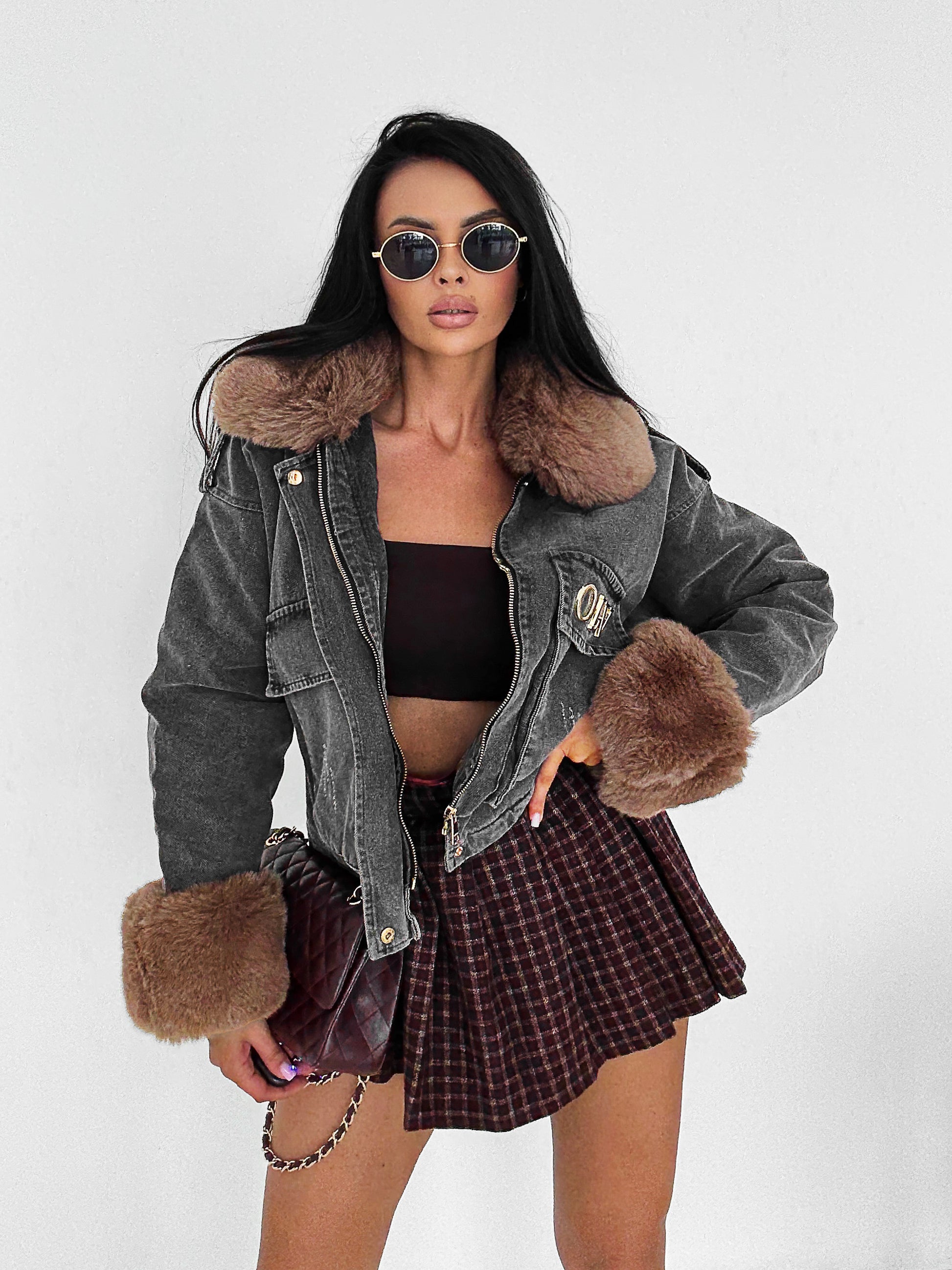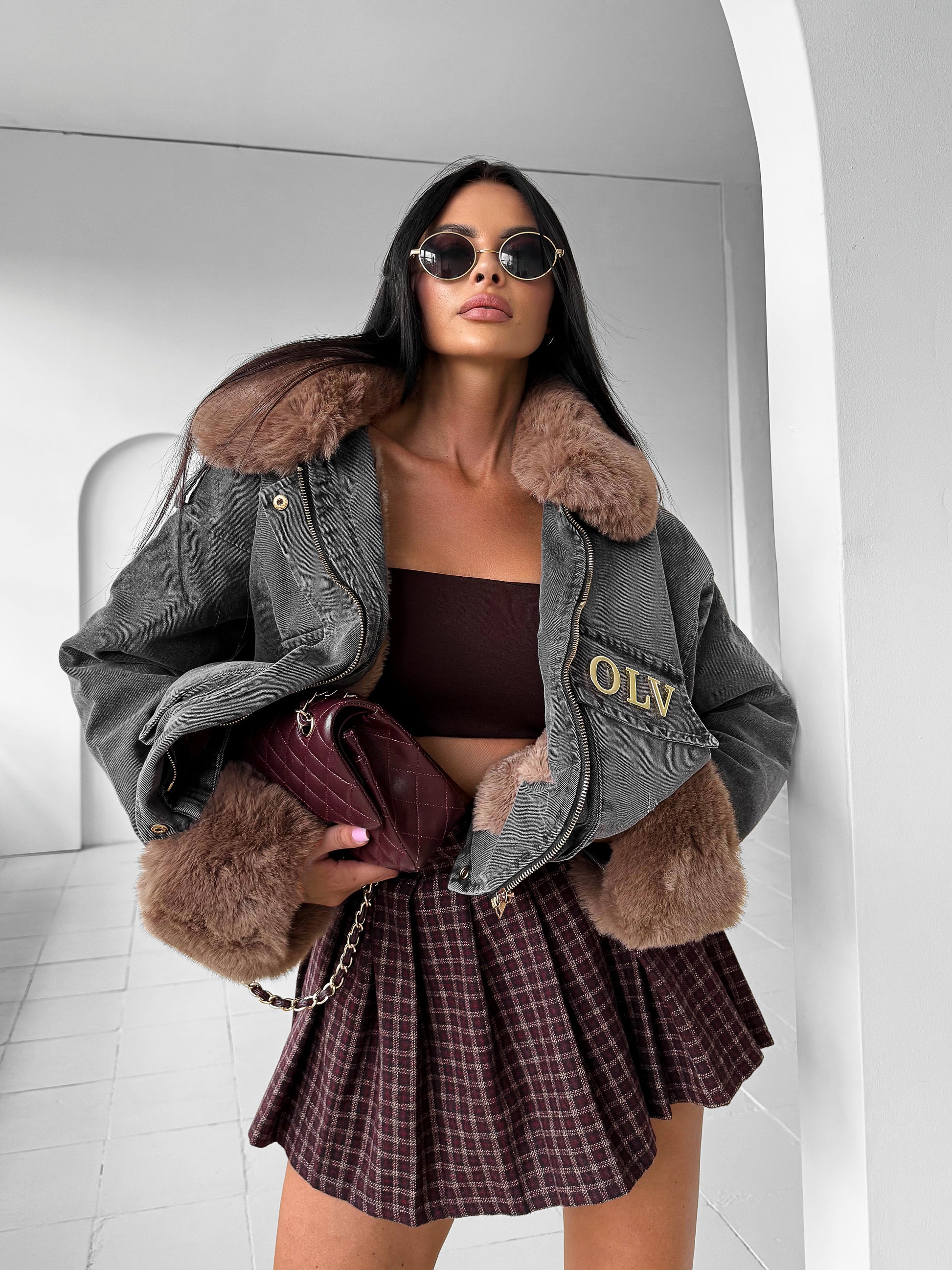 A modell puha szőrme béléssel van ellátva a gallérnál és az ujjaknál, amely teljesen levehető.
