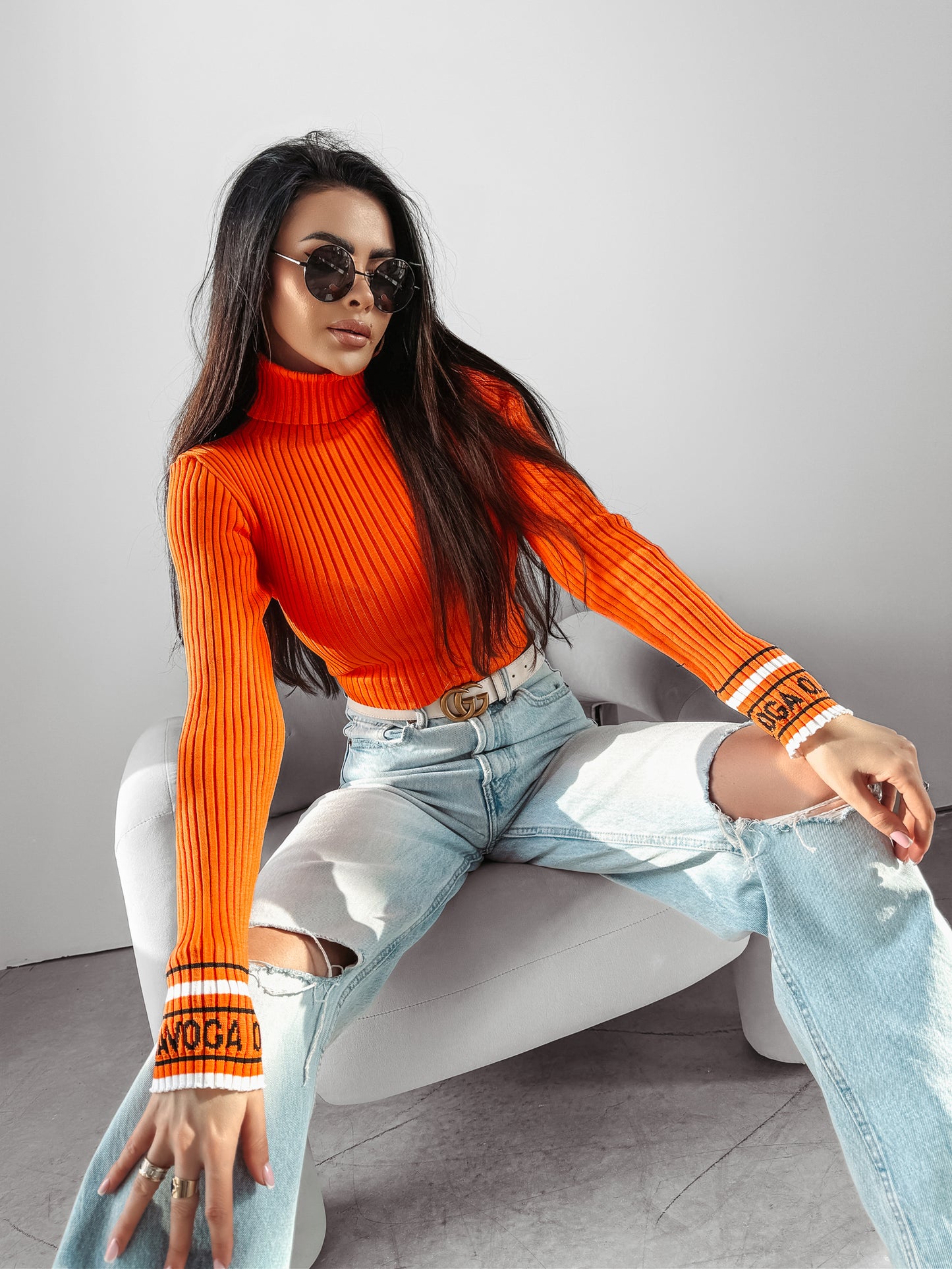 Rendkívül elegáns és testhezálló garbó, puha tapintású, rugalmas,bordázott anyagból