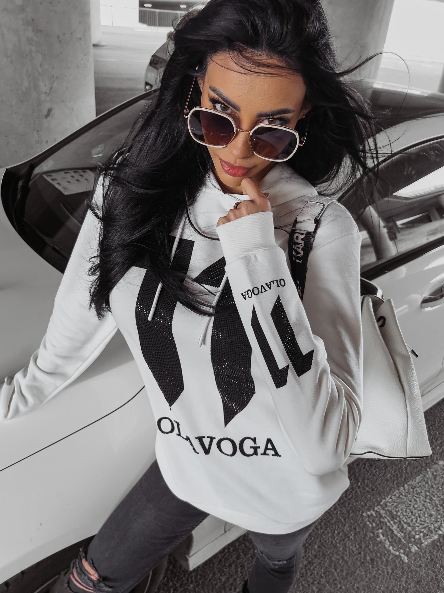 Uniszex pulóver, neked és neki. Klasszikus kapucnival és húzózsinórral, 11-es motívummal az elején és az ujján,csillogó fekete flitterekkel hímezve.